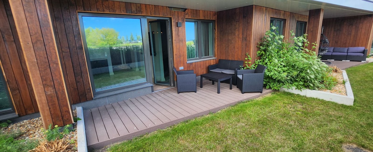 Welcome to your bright and spacious retreat! Spacious, modern flat in a new building just steps from the harbor and a short walk to the city centre. Sleeps up to 5 guests. Features a large living room with a fully equipped kitchen, one master bedroom with a king-size bed, and a modern bathroom. Perfect for families, friends, or business stays. Fast Wi-Fi, Smart TV, and self check-in. Quiet area close to shops, restaurants, and waterfront views. Your ideal base to explore the city!
