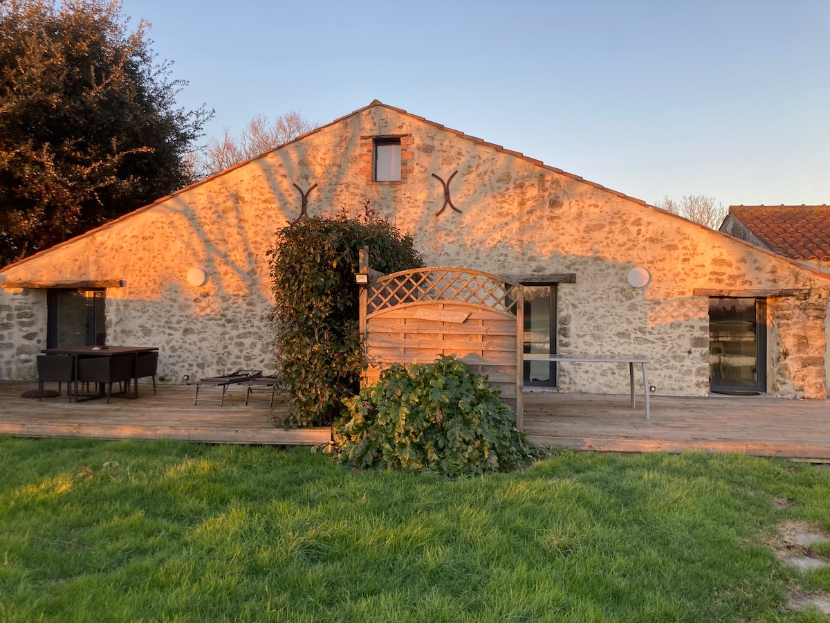 Détendez-vous dans ce logement calme, offrant une vue sur les canaux ou, de votre terrasse privée, vous pourrez observer les oiseaux migrateurs ou sédentaires de cette zone natura 2000. Ce gîte nommé le "charme" fait parti d'une ancienne grange rénovée composée de 3 gîtes avec une salle commune équipée d’un sauna ,d’un billard et d’appareils de sport. Venez vous ressourcer au cœur du marais, à 10 km des plages et à 33 km de l'île de Noirmoutier. Les draps et serviettes ne sont pas fournis.