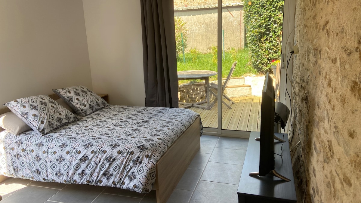 Confort et paisibilité au milieu de la nature. Nous aurons le plaisir de vous recevoir dans un studio spacieux de 27m2, attenant à une maison neuve, dans une propriété, à la campagne. Composé d’une pièce de vie avec un canapé confortable ainsi que d’une cuisine, vous avez accès à un coin chambre, doté d’une TV, et à une salle de bain. > Matelas NEUF soutien Ferme ép. 23 cm (mars 2025) > Mise en service du clim réversible en décembre 2025 > Accès Free tv pour avoir accès aux chaines.