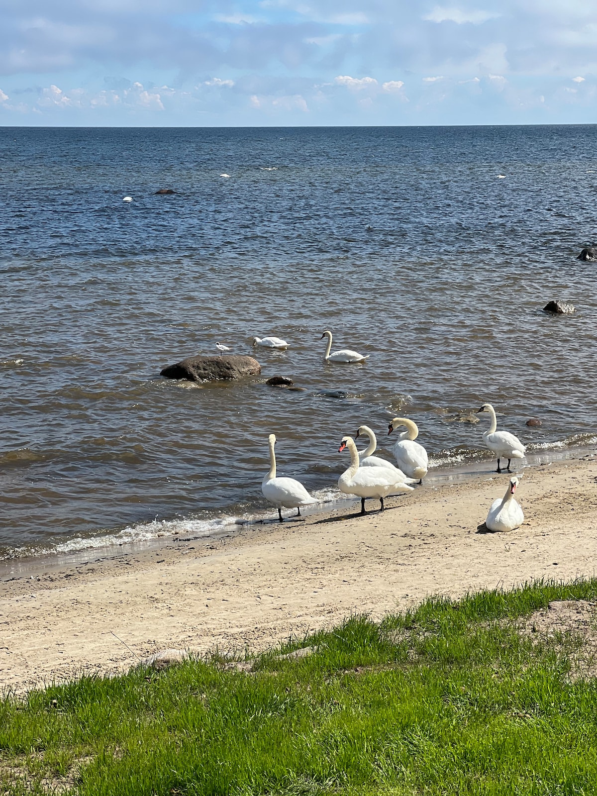 About the cabins - when you see them yourself, you will see that there are not only two, but three of them. The newly built two cabins are derived from the ancient third one to make the common landscape more interesting. The location of the cabins is very convenient, it is close to the sea, a shop, a bus stop, a gas tank, Cape Kolka and a cafe. We will indicate the places we recommend to visit at the end of the guide to make your visit more convenient.