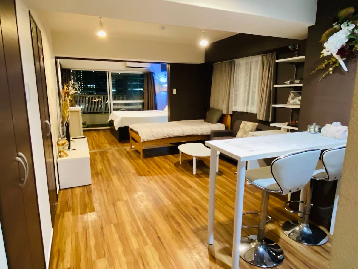Real Life AOYAMA 位於東京都港區的南青山,距離最近的地鐵站青山一丁目站只需步行3分鐘,可搭乘銀座、半藏門及大江戶三條地鐵線,周邊鄰近夜生活絢爛的六本木、辦公經濟活躍的新橋、時尚精品店林立的表參道,地段相當精華,是東京熱門景點的中心,交通十分便利。 位於三樓的兩臥室兩廳行政套房單位-Speakeasy,55平方公尺寬廣空間,配有完整廚房設備及兩間獨立的臥室,主臥室配置一張雙人床與一張雙人沙發床,次臥室則備有一張雙人床,至多可入住六人。 南青山地區饒富文藝設計氣息,擁有前衛流行的在地品牌店、大師級的建築作品以及充滿藝術薰陶的知名美術館。入住在南青山,感受獨有的人文質感,體驗東京的高端生活。
