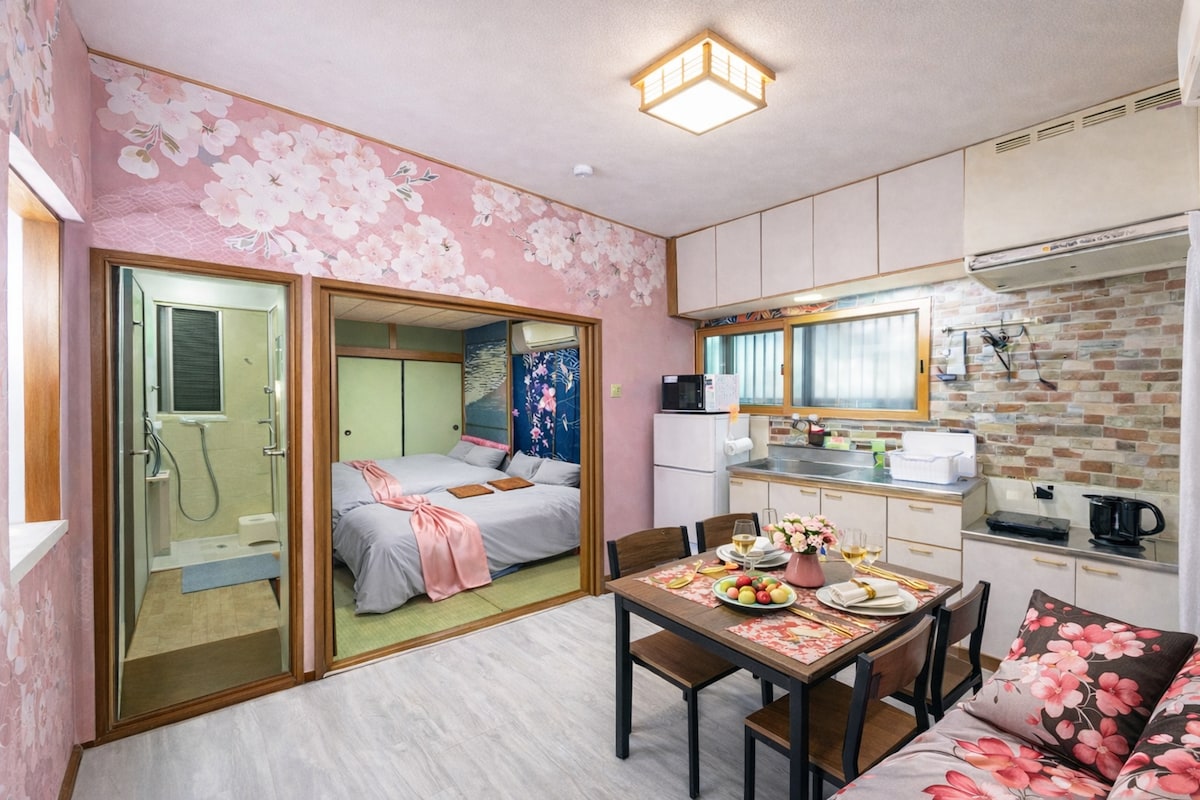 東京日式榻榻米和风客房|龙与富士山手绘壁画|地铁步行6分钟