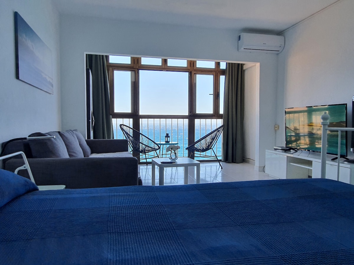 Un precioso apartamento de diseño, recientemente renovado con con impresionantes vistas de atardecer sobre el Océano desde su terraza. Primera línea al mar. Después de un largo día en la naturaleza, descansa en la cama King size (180x200cm) ----- A lovely apartment recently renovated with stunning views of the sunset, first line over the ocean from the terrace. Relax while reading, eating, or doing yoga. After a long day in nature, rest on the King size bed (180x200cm)