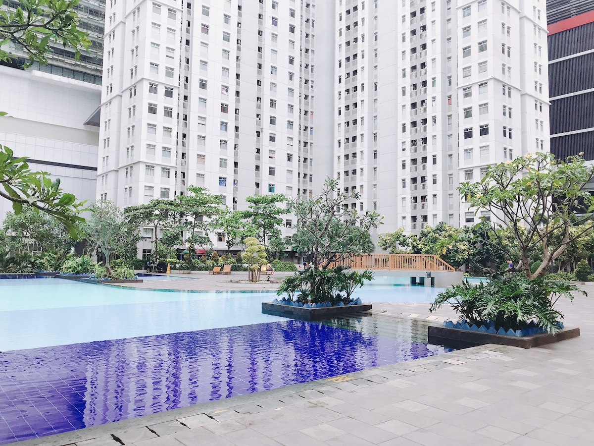Cozy luxury apartment located at heart of CBD of west Jakarta, surrounding by 3 Big Shopping Center (Central Park Mall, CP Mall , Taman Anggrek Mall) With nice city view and easy access to public transport also ( Transjakarta BRT just in front of the Podomoro City Complex ) To Access the unit need to double tap the access card ( at Lobby and Elevator ) , so you will feel save and private Have a nice pool with whirlpool and nice gym With fiber optic WiFi unlimited access in apartment unit