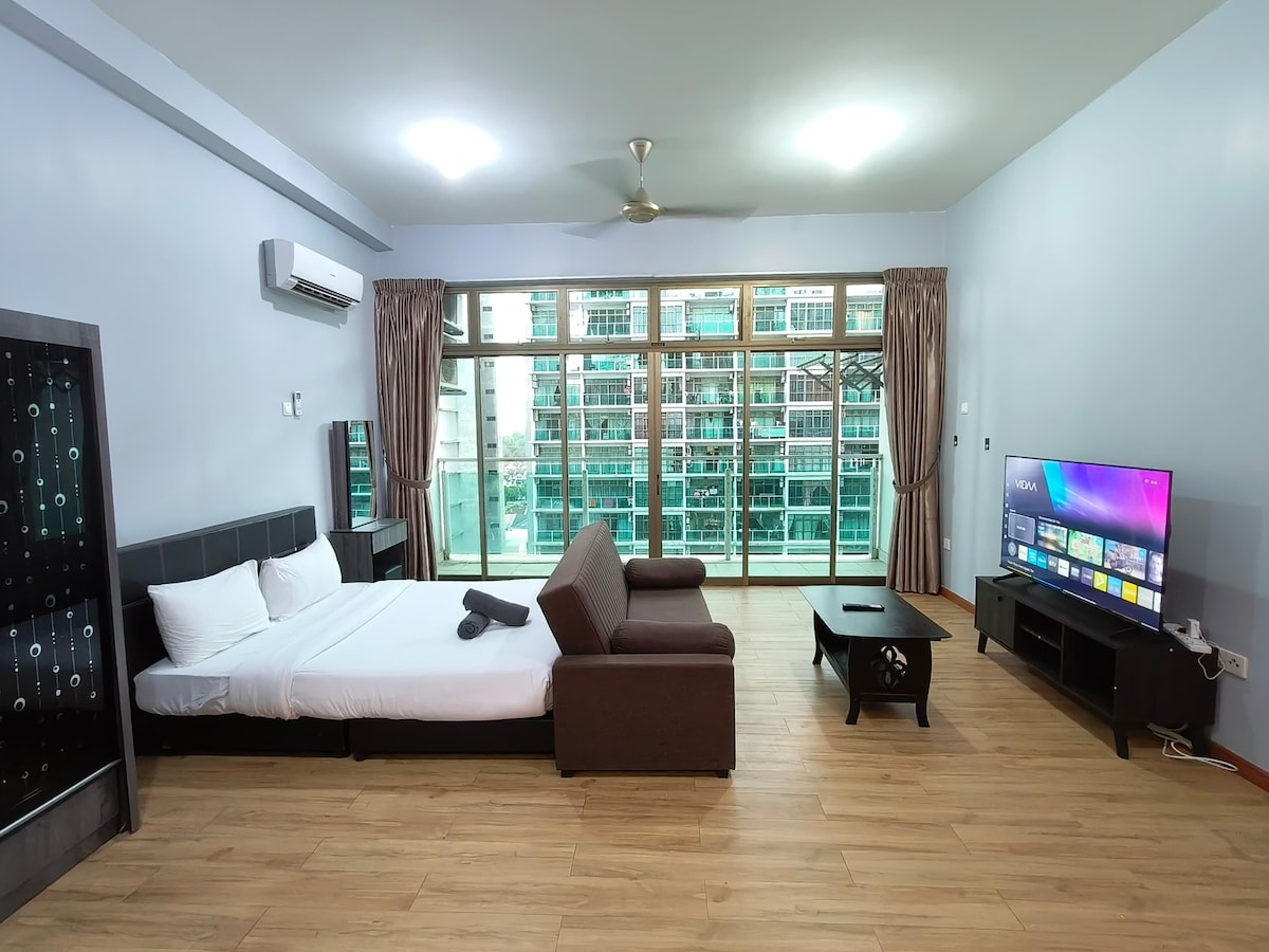 Cozy studio unit at Palazio Taman Mount Austin (Block C1) facing Lake View, perfect for couples, solo travelers. Enjoy easy self check-in 🚙Car : Free parking (Ground Floor) 🏍Motorcycle : RM20/night by building management 🏙 Highlights: • 5-minute drive to Austin Heights • 10 minutes to Toppen & IKEA • 20 minutes to JB Customs Whether you're here to relax or explore JB, this is your perfect base!
