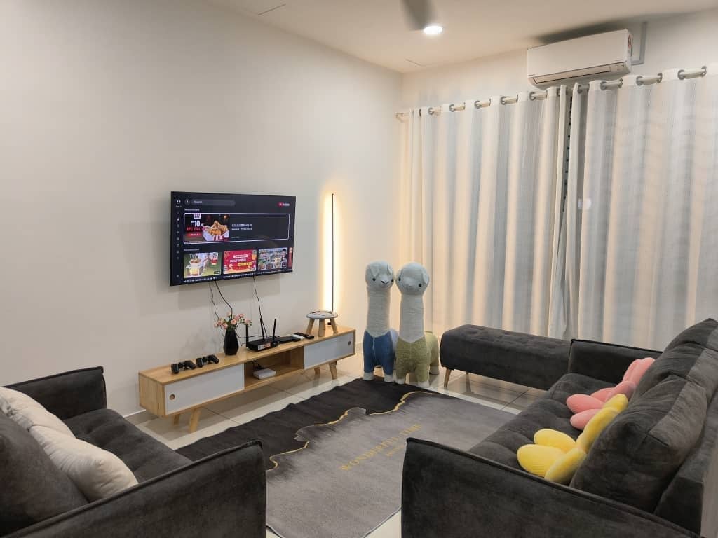 Our unit designed with white & black concept, nearby Toppen Ikea, Aeon Tebrau, Mount Austin trendy cafes and Johor Jaya Street food vendors and restaurants . We provide: *500Mbps high-speed WiFi *fully air-conditioned (5 units new aircon) *karaoke & TV box system (Jazpiper) *65inch smart TV *board games *simple kitchenware *SK Magic water purifier *towels *shampoo *body wash *coffee & tea