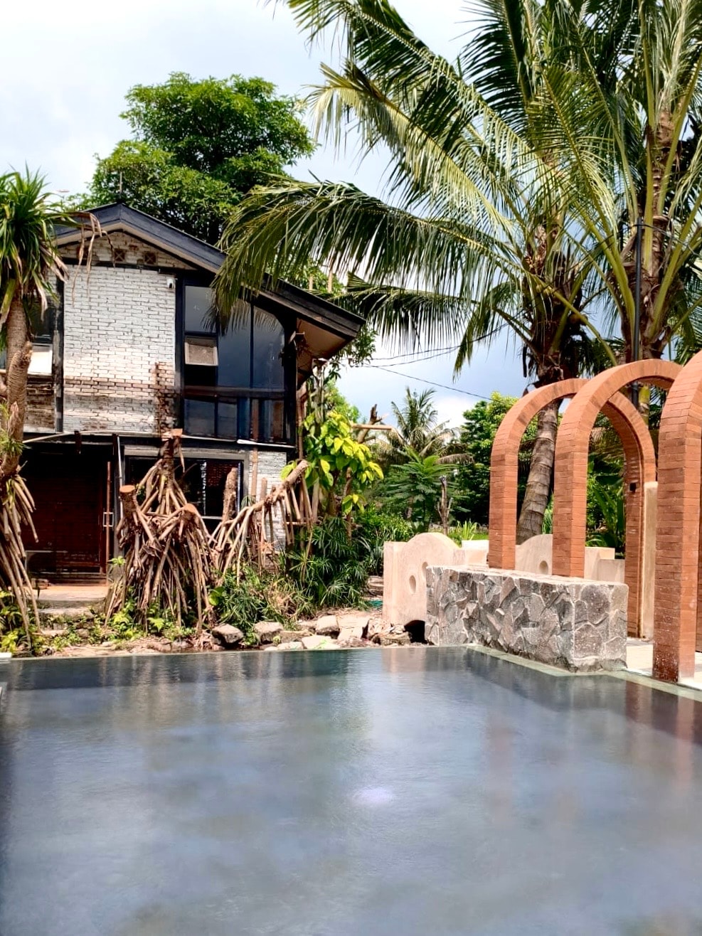 A private and unique Villa by the river in Ngaglik Sleman, just up north jalan Palagan, only 6,5 km from Monument Jogja Kembali. The 1000sqm land has big trees, two villas, a plung pool, a wooden deck by .the river and one corner of vegetables and fruits garden.