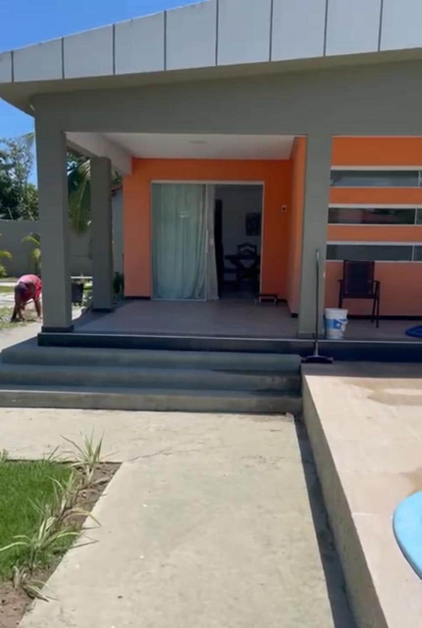 A casa fica apenas 1 rua da praia, 150 mt do mar, muito bem localizada. No mesmo quarteirão você encontra depósito de bebidas e food truck. fácil acesso a praia. A casa tem 5 quartos, total de 18 camas. Cozinha equipada com geladeira, freezer vertical, liquidificador e todos utensilios necessários para fazer seu almoço, café e jantar. Dentro da casa tem 1 banheiro e no lado externo tem mais 2 banheiros. Churrasqueira, pia externa, mesa, cadeiras e uma aérea externa massa com redes.
