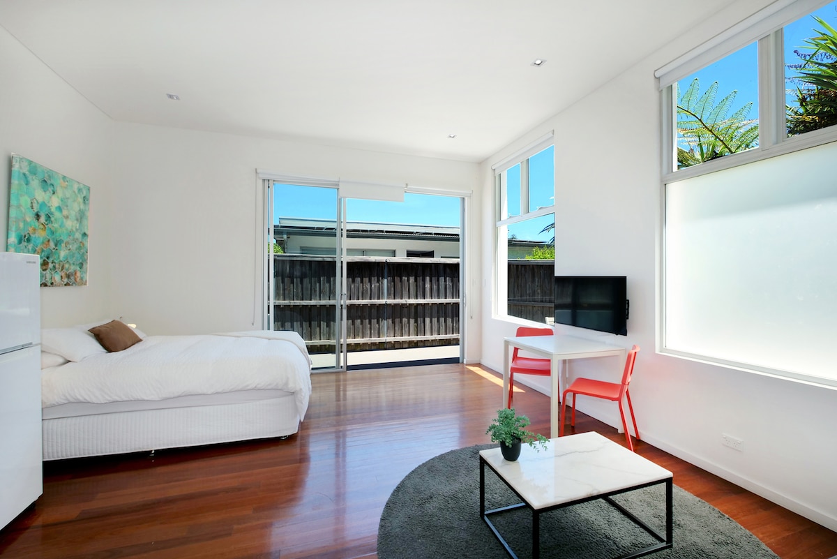 Private, beautiful and bright studio apartment just five minutes walk to Bronte beach. Situated above our garage in a quiet cul de sac with unrestricted parking. The Studio has it's own private entrance - come and go as you please! Our enviable location is perfect with or without a car, with public transport, amazing Cafe's, Restaurants and Convenience Stores just two minutes away on foot. Boasting a modern shower room and kitchenette, it comfortably sleeps two in a Queen size bed. WIFI.
