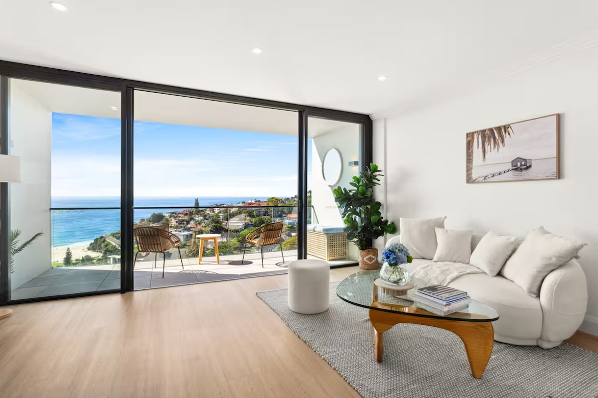 Wake up to panoramic views of Tamarama Beach and the Pacific Ocean in this luxury apartment just minutes from Bondi Beach and local restaurants. Floor-to-ceiling glass doors frame views, sunrises, surfers and migrating whales, while designer interiors and modern finishes ensure comfort. Beach access through Tamarama Park, just a 4-minute walk (approx. 400m) to the beach, secure parking. Immerse in Sydney’s iconic Bondi-to-Bronte coastal lifestyle inviting you to live in sync with the sea.