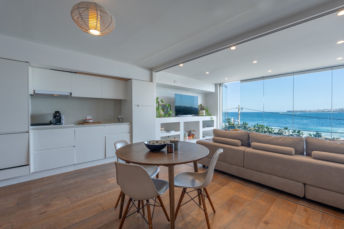 Welcome to the most post-able studio in Bondi, where every detail is designed to impress. This newly renovated, designer studio may be compact, but its genius layout maximizes comfort and style. From the moment you step in, you'll be captivated by the sweeping views over Bondi Beach, perfectly framed by the banquette and dining table by the window—your own private lookout. This is more than just a place to stay; it’s a retreat where the views and the space itself are equally photo-worthy.