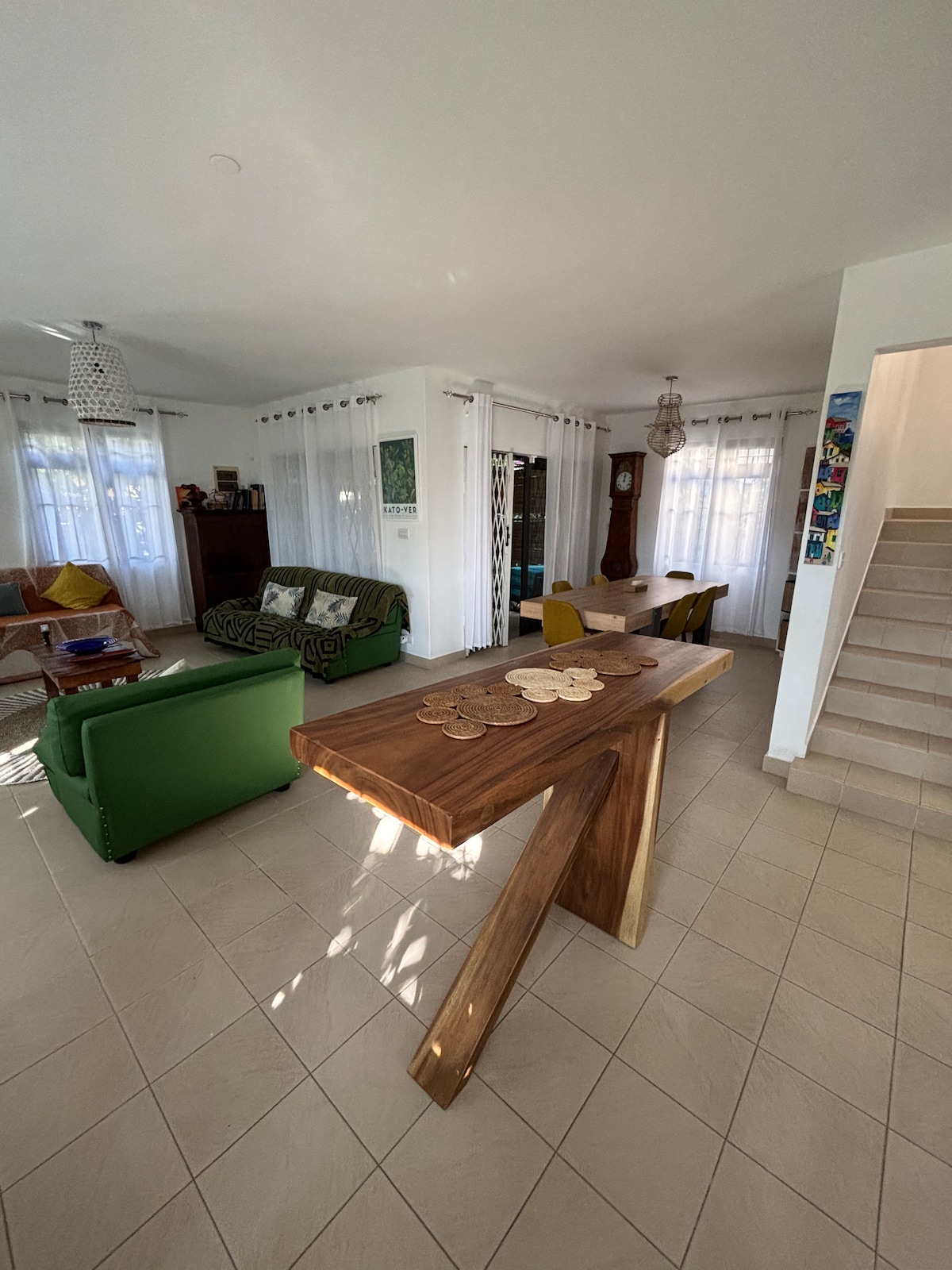 This beautiful beach property in a very quiet area of Tamarin Bay has been recently renovated . We are positioned between the sea and the river and only 30 steps away from a beautiful near enough private beach . Ideal for families up to 6 people with 3 large bedrooms, two rooms upstairs, master bedroom downstairs overlooking the beach. As a special offer we will provide a free rental car for the duration of your stay with us saving you at least 25 euros per day.