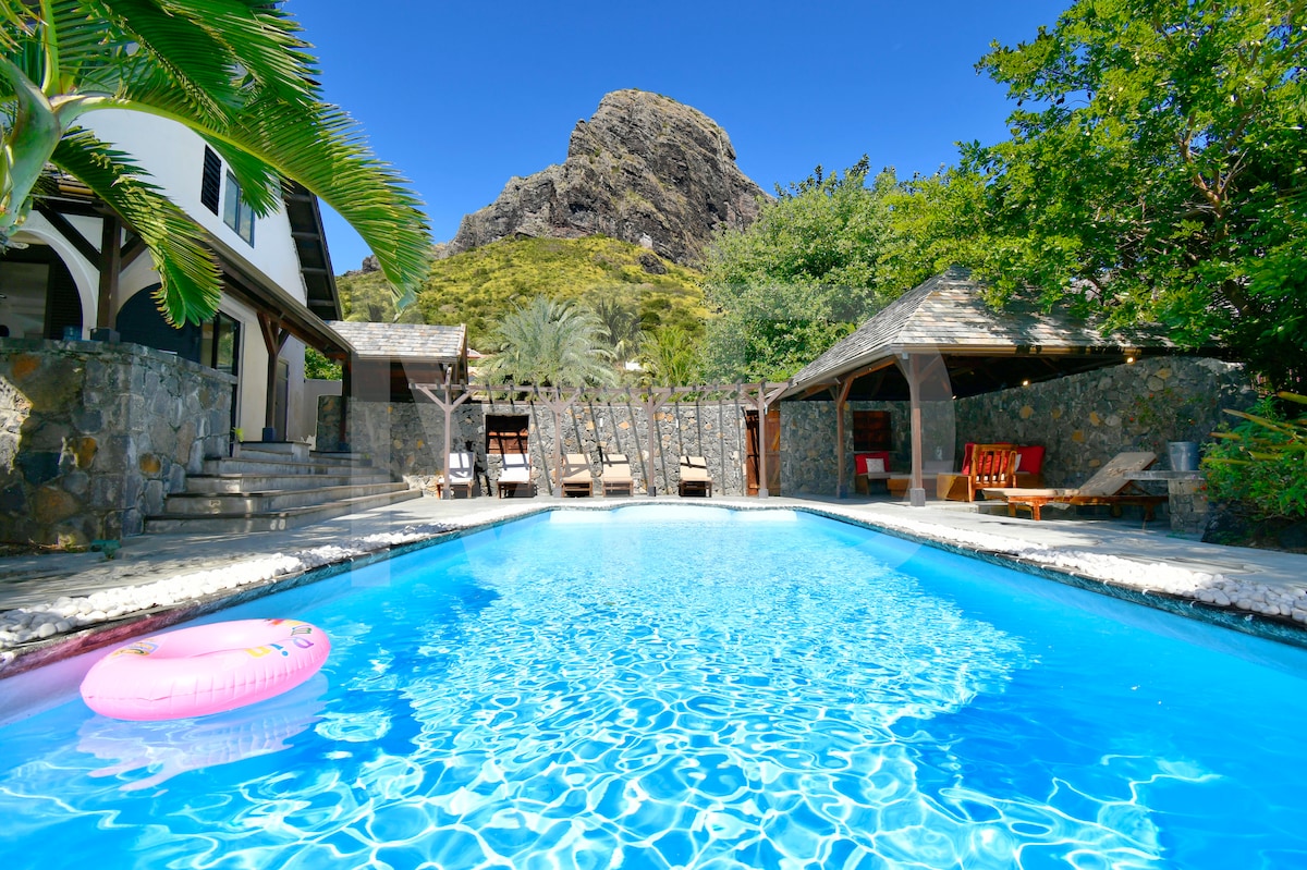 Unique setting between mountain and sea Private overflowing swimming pool. Large veranda with scénic views 2 comfortable bedrooms with garden view Free wifi (fiber) CCTV surveillance and Burglar alarm with security response. At your service: Natacha (household), Vikash (pool and garden) Licensed by the local Tourism Authority (License n° 15561)