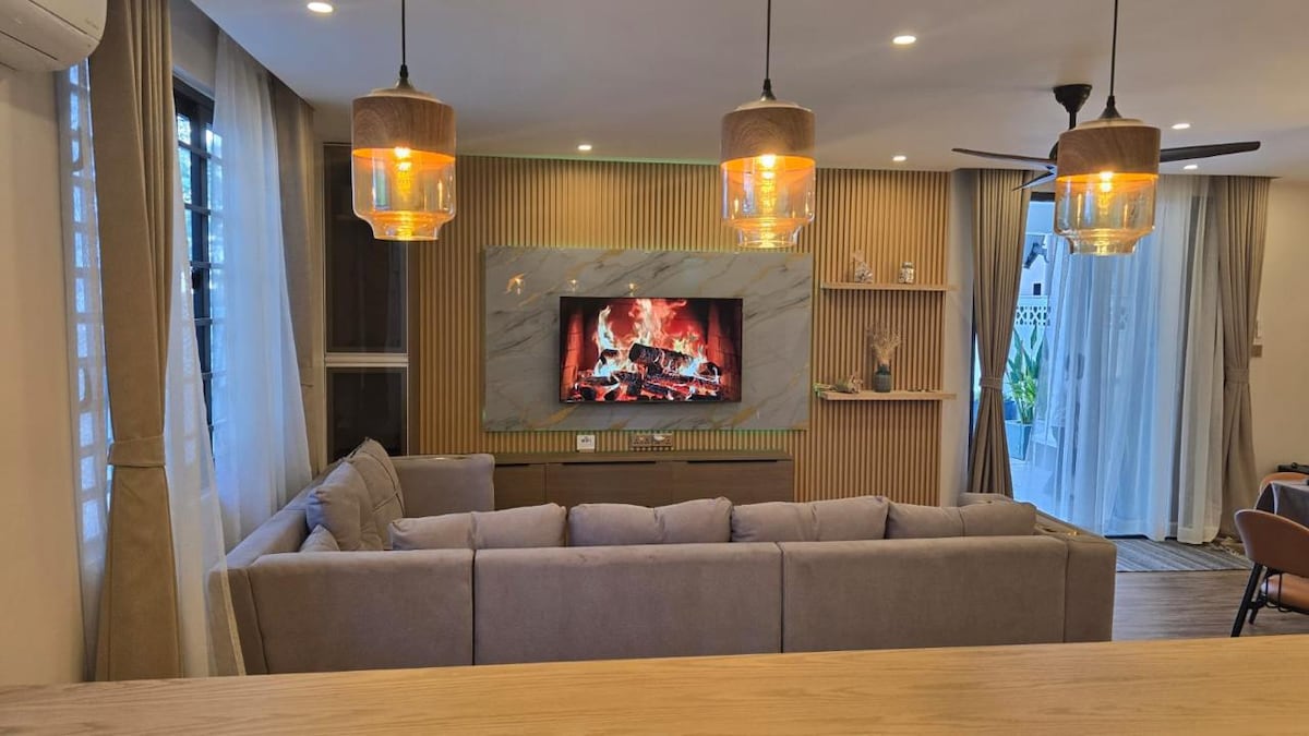 Designed in an open space style with natural stones and woods; and is suitable for a maximum of eight people (4 Adults + 4 Kids). The House is situated in a secured area with private gate access. Our home is fully furnished with naturally ventilated, Air Con and Fans throughout the entire house and bedrooms, a magnesium private pool, open kitchen, outdoor dinning, barbecue, free fast Wi-Fi (bring your laptop or smartphone), and all the comforts you need to make this your home away from home.
