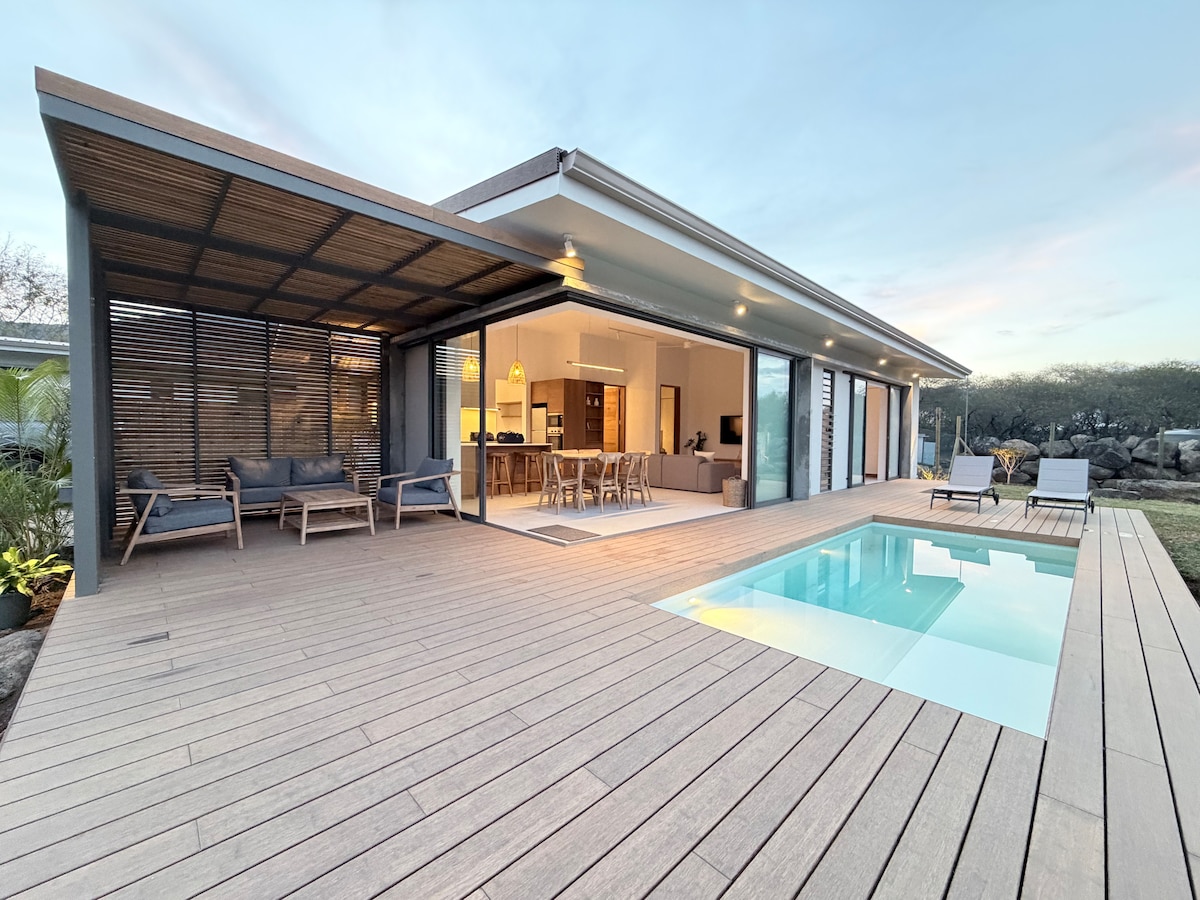 Escape to a private luxury cottage where nature, comfort, and tranquillity meet. Located within a secure gated nature reserve at the foot of the highest peak in Mauritius, lush tropical garden, private pool, and stunning mountain views. Enjoy complete comfort and privacy with your own entrance, fenced garden and parking. All of this, just 5 – 20 minutes drive from the island’s most spectacular west coast beaches, Black River National Park (nature hikes and trails), gyms, shops and restaurants.