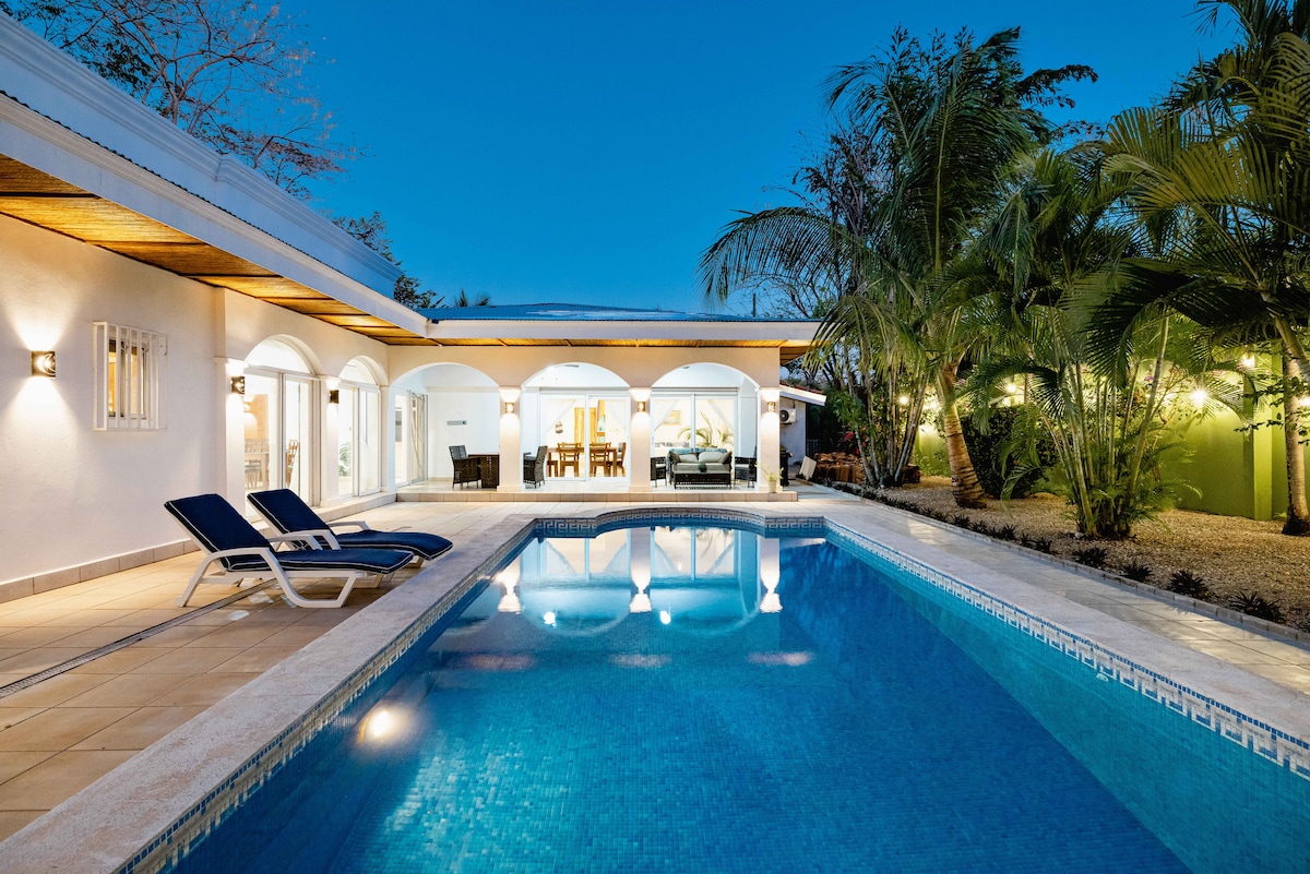 Welcome to Maitri, your cozy getaway! This 2-bedroom, 3-bathroom villa is crafted for comfort & relaxation. Located just an 8-minute stroll from the beach, you'll have the perfect blend of peace & adventure. Stay connected with 2x 200mbit high-speed internet. Enjoy exclusive concierge & access to the Langosta Beach Club included with your stay! We are located in Central Tamarindo next to the Tamarindo Night Market. 1 hr from LIR (Liberia Airport) and 4 hrs from SJO (San Jose Airport) by car.