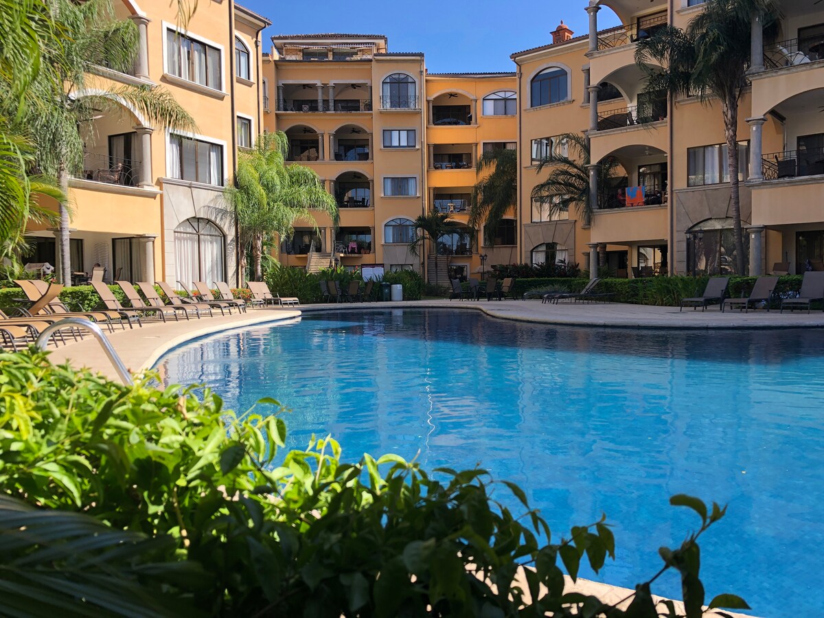 Casa Jaguar is a colorful and spacious Sunrise Tamarindo condo with all new mattresses (Dec 2023), kitchen, indoor/outdoor dining tables, and BBQ - perfect for families or groups! We have wifi, a/c units in each bdrm and a flat screen TV in the comfortable living room. Ideally situated on the first floor so you can walk right out to the big pool with waterfall. Famous Tamarindo beach is across the street and you are steps to vibrant shops, restaurants, activities, surf schools, and nightlife.