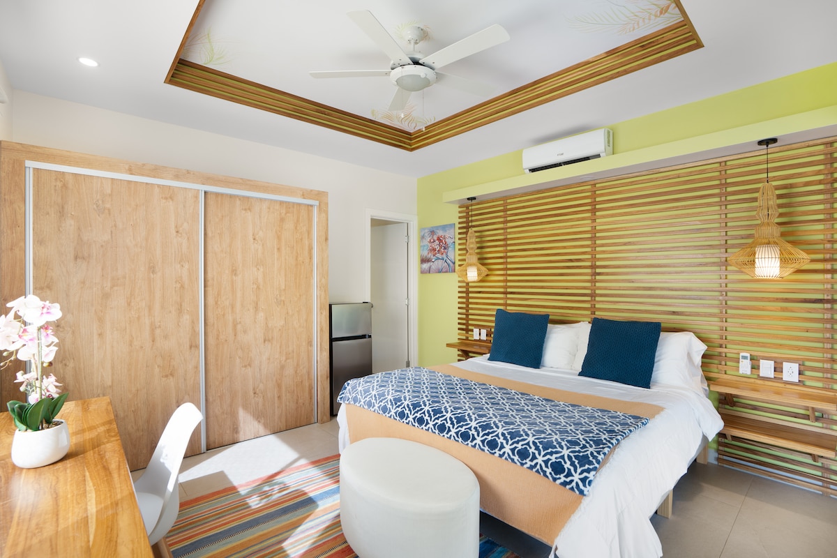 Relax in a boho-colonial hideaway in our lush 4-room hotel. This room offers a queen bed, A/C, kitchenette, outdoor porch, secure parking, fast Wi-Fi, hot water, and spa-like toiletries. Enjoy poolside lounging, complimentary snacks, and à la carte breakfast. Peaceful, cozy, and just minutes from Tamarindo’s beach, shops, restaurants and cafés. We will gladly help you coordinate special requests, transportation and activities.