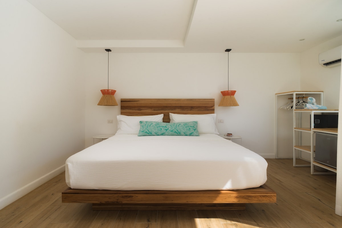 We are Hotel in the Shade, a boutique family-run hotel in Tamarindo. We aim to offer our guests the type of place where we would like to stay. That is why we focus on cleanliness, comfort, and contemporary décor. With a private balcony overlooking our pool, this queen room is perfect for those who want to enjoy the energy of the hotel and have their over private oasis. Included is access to our air-conditioned coworking space, perfect for travelling professionals and digital nomads alike.