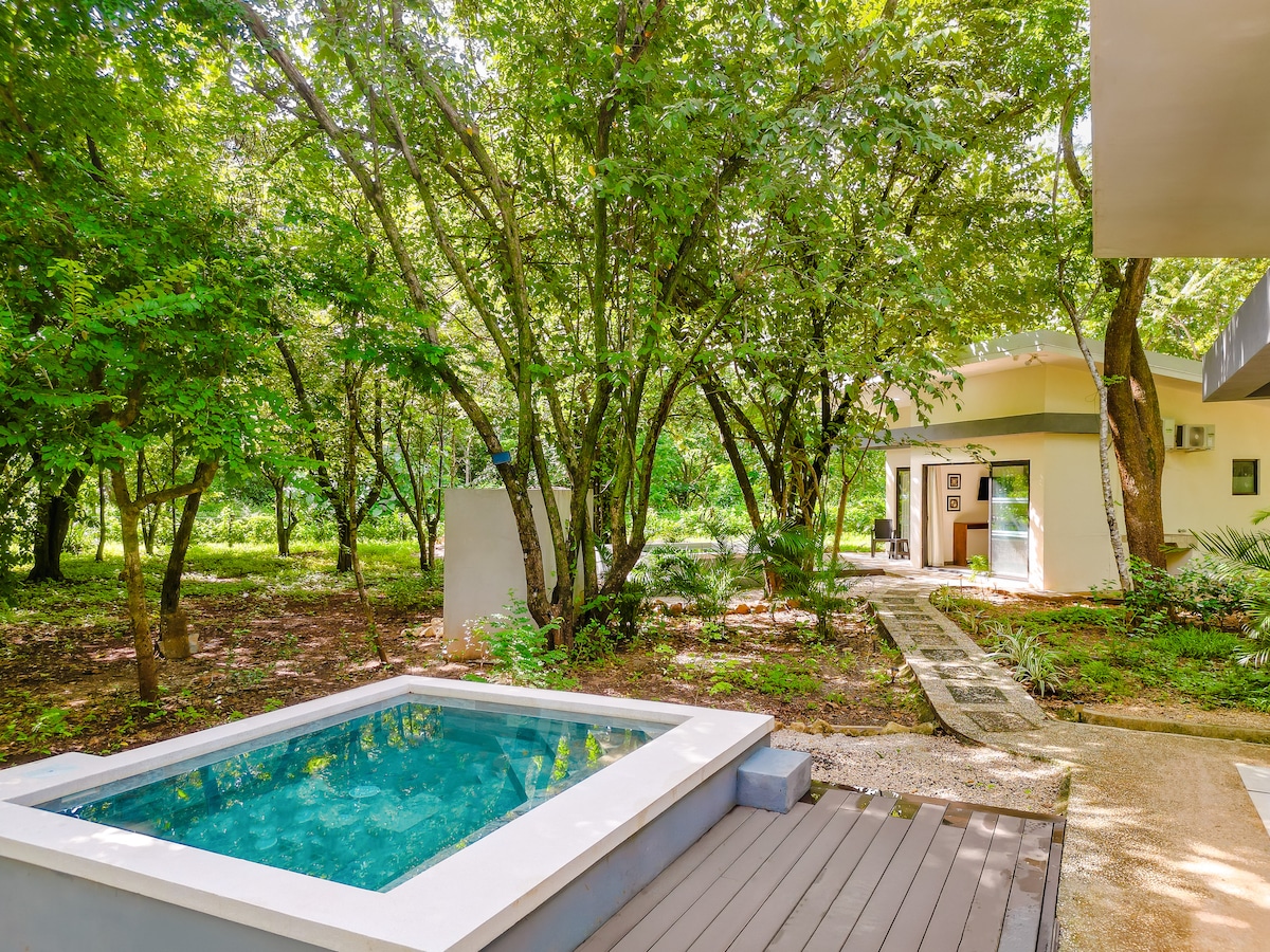 El Pasito offre 6 lodges. petit havre de paix avec piscine — calme, confort et Pura Vida à Potrero Votre cabina est un bungalow moderne, climatisé, intime et parfaitement équipé, idéal pour un couple souhaitant profiter du meilleur du Guanacaste. Dès votre arrivée, vous serez enveloppé par une atmosphère tropicale paisible. Votre terrasse en bois et votre piscine privée, entourées de végétation, créent un espace intime parfait pour vous détendre dès le premier instant.