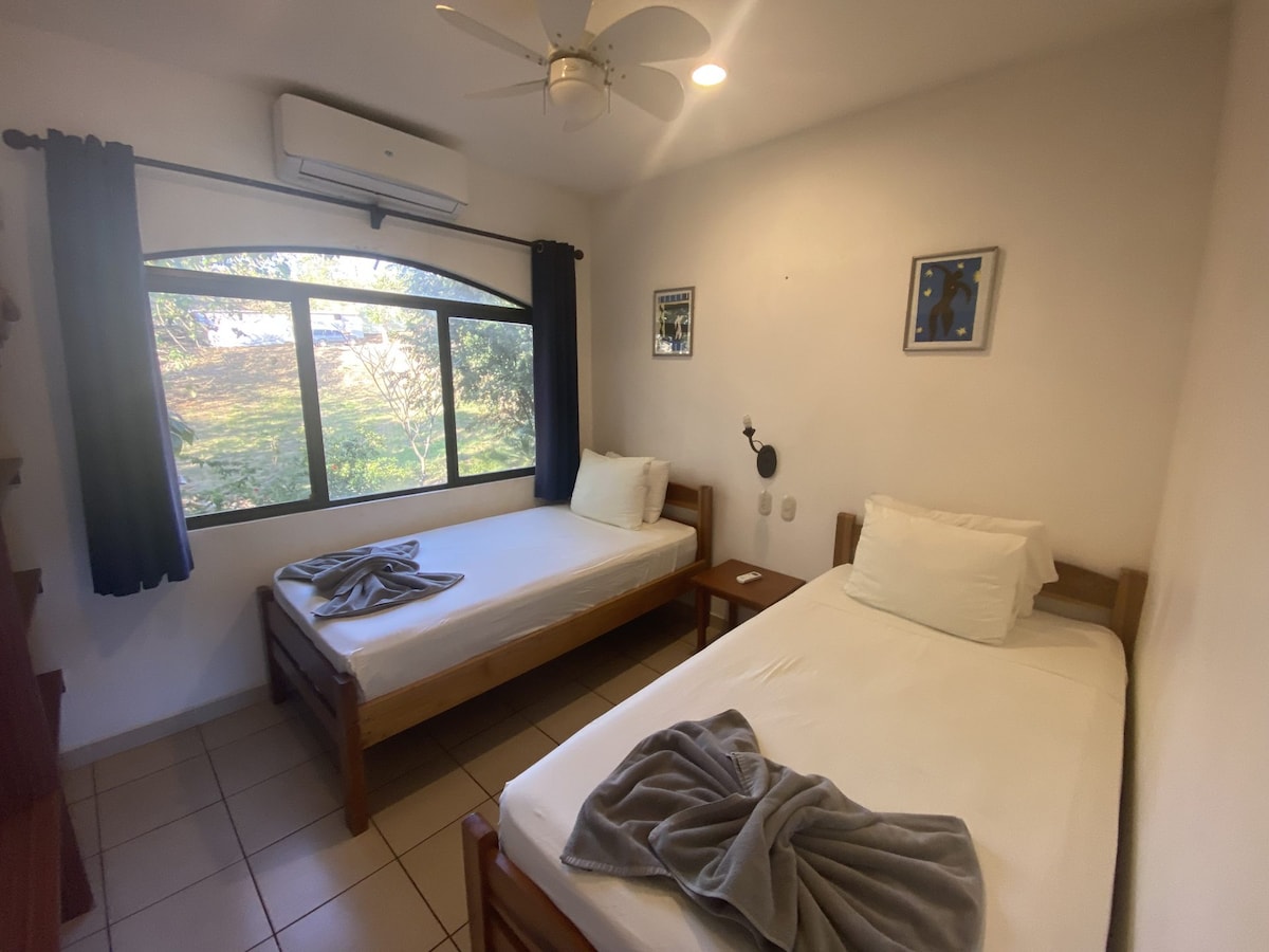 This 2 bedroom/2 bath is nestled in nature, yet just a couple minutes walk to all of the towns amenities. Bright and airy, this modern condo has high wooden ceilings with fans and air conditioning throughout. A fully equipped kitchen, a spacious balcony that overlooks the large pool. A peek of the ocean plus amazing views of the sunsets and the howler monkeys . Walking distance, the beach can be accessed by two gates from the property where you can explore surfing, tours and more.