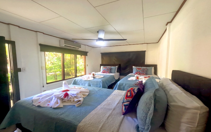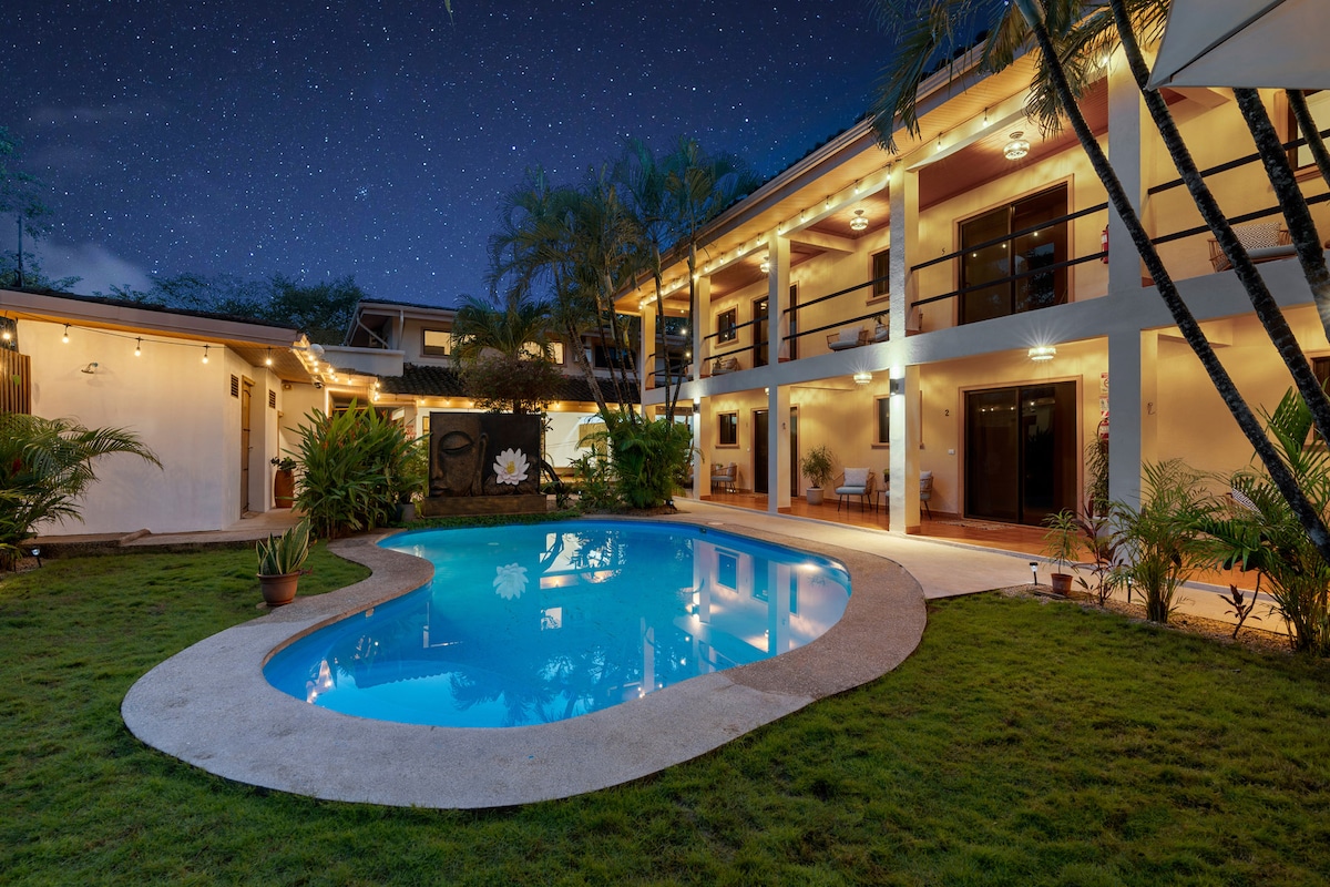 Relax in a boho-colonial hideaway in our lush 4-room hotel. This room offers a queen bed, A/C, kitchenette, outdoor porch, secure parking, fast Wi-Fi, hot water, and spa-like toiletries. Enjoy poolside lounging, complimentary snacks, and à la carte breakfast. Peaceful, cozy, and just minutes from Tamarindo’s beach, shops, restaurants and cafés. We will gladly help you coordinate special requests, transportation and activities.