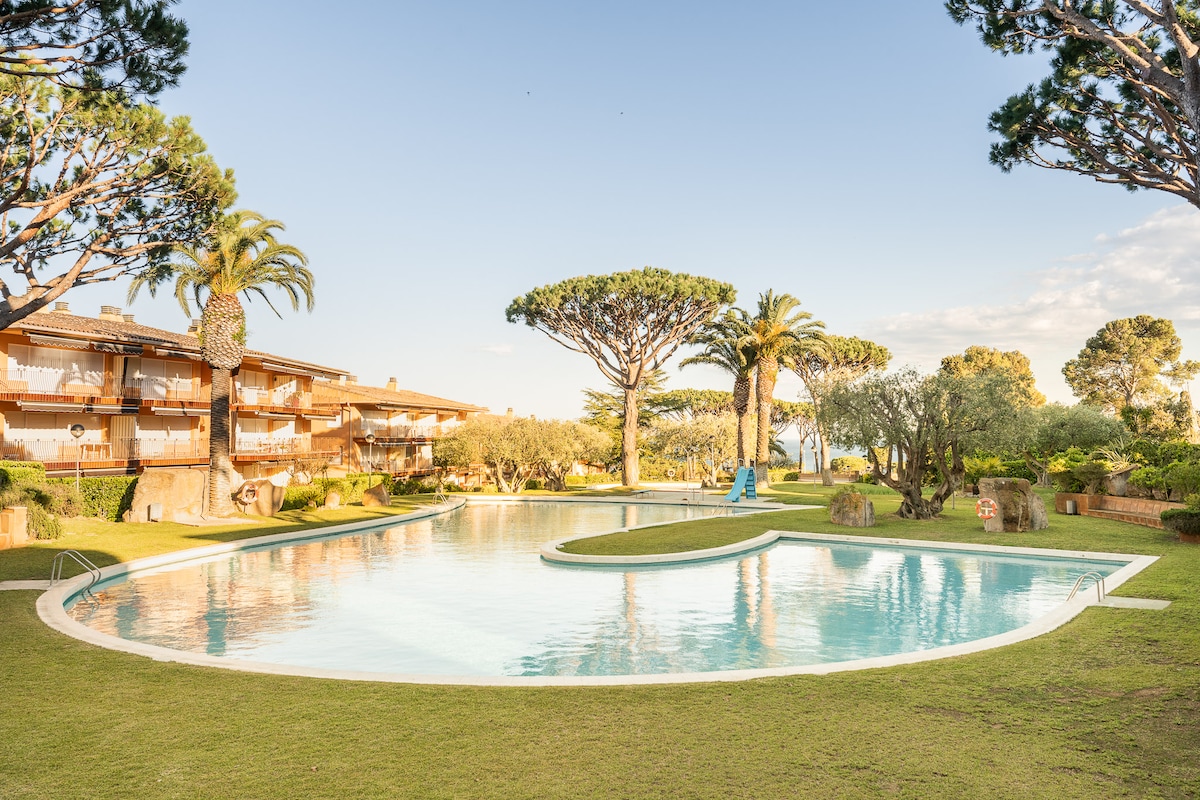 Brand new fully-equipped apartament in a recently built luxury condo. Located in the Natural Park of Platja de Castell. Two wonderful beaches can be reached within a 5 min walk (150m): Cala s’Alguer (iconic, quiet and picture-perfect) and La Fosca (long, white sand and familiar). Has direct access to hicking and cycling routes through the pines in the biggest Natural Park in Costa Brava. The unique and peaceful infinity pool in the middle of the forest guarantees unforgettable holidays.