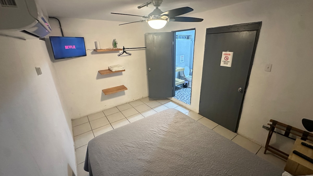 Quédate en este lugar único ubicado en pleno centro y no te pierdas nada. Cerca del Puente internacional y área comercial del centro con farmacia y tiendas Oxxo y todo tipo de comercios, además tu habitación equivocada con aire acondicionado, wifi internet, Frigobar, horno de microondas, cafetería eléctrica, agua caliente todo esto y más para que tú te sientas como en casa