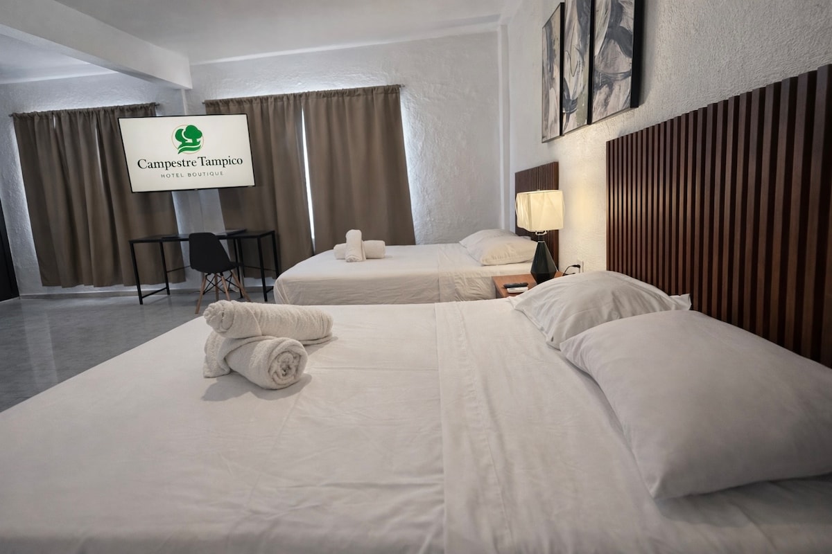 Habitación Doble Matrimonial con Baño Privado – Hotel Raffaello Ubicada en el tercer nivel, nuestra habitación ofrece un ambiente moderno, privado y acogedor, ideal para descansar después de un día de paseo o trabajo. Cuenta con dos camas matrimoniales, baño privado, aire acondicionado, televisión, escritorio y Wi-Fi gratuito. Perfecta para parejas o viajeros que buscan comodidad, tranquilidad y una excelente ubicación en Linares.