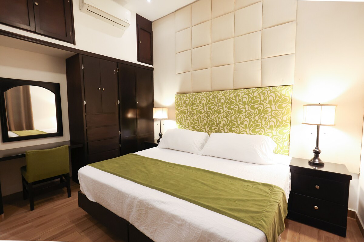 Habitacion moderna con un toque industrial, con baño propio, cocina, climatizados con A/C Frio-Calor, internet de alta velocidad, Smart Tv, Sala recibidor área común, Extintor (4), Detector de humo en cada habitación, USB Charge center por habitación. Increíbles para Turismo Laboral, Medico o Familiar. Lugar muy céntrico, tranquilo, ubicado en una de las zonas más céntricas y seguras de la ciudad. Disfruta del fácil acceso a Consulado, a 3 Puentes internacionales y la playa.