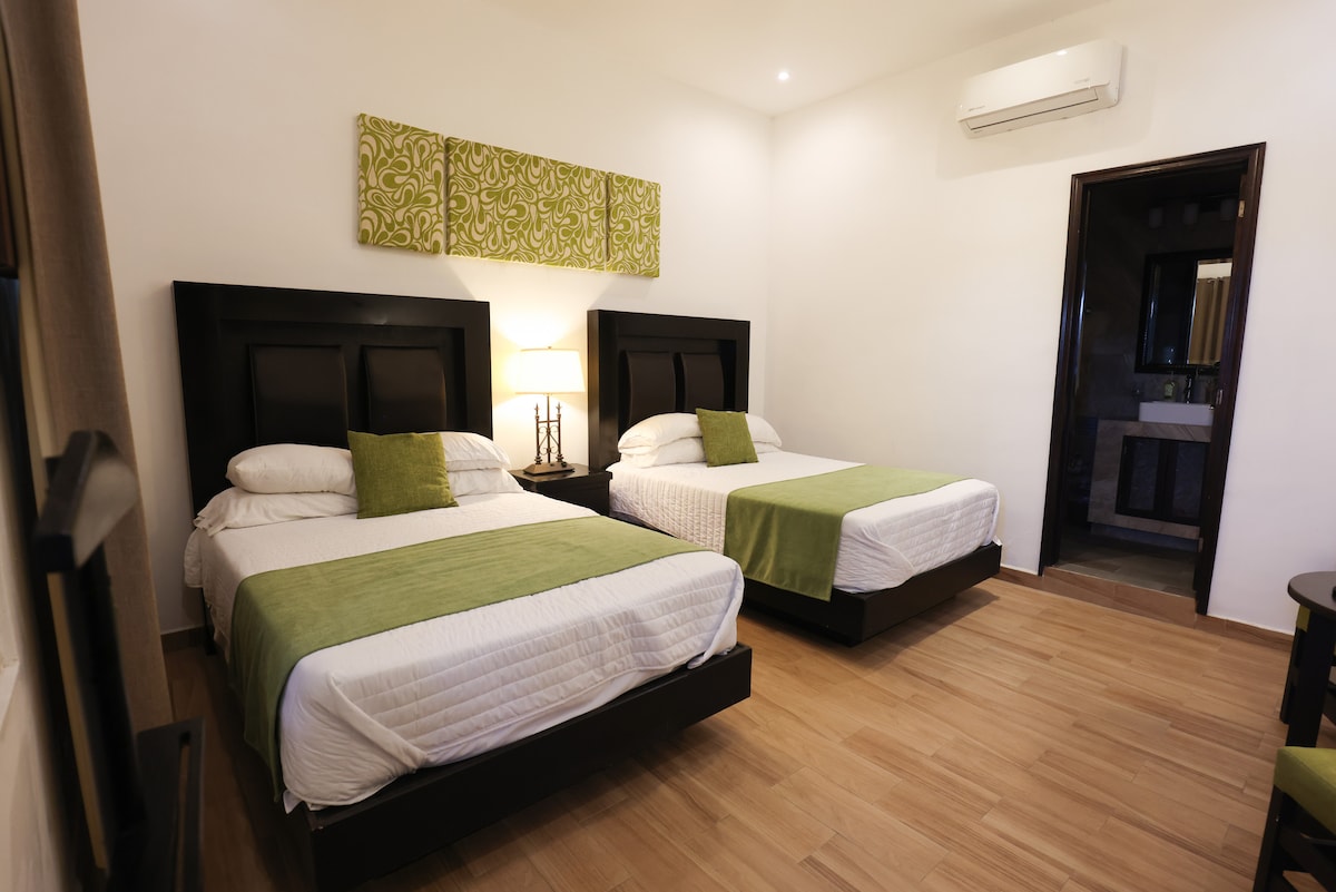 Habitación Doble Matrimonial con Baño Privado – Hotel Raffaello Ubicada en el tercer nivel, nuestra habitación ofrece un ambiente moderno, privado y acogedor, ideal para descansar después de un día de paseo o trabajo. Cuenta con dos camas matrimoniales, baño privado, aire acondicionado, televisión, escritorio y Wi-Fi gratuito. Perfecta para parejas o viajeros que buscan comodidad, tranquilidad y una excelente ubicación en Linares.