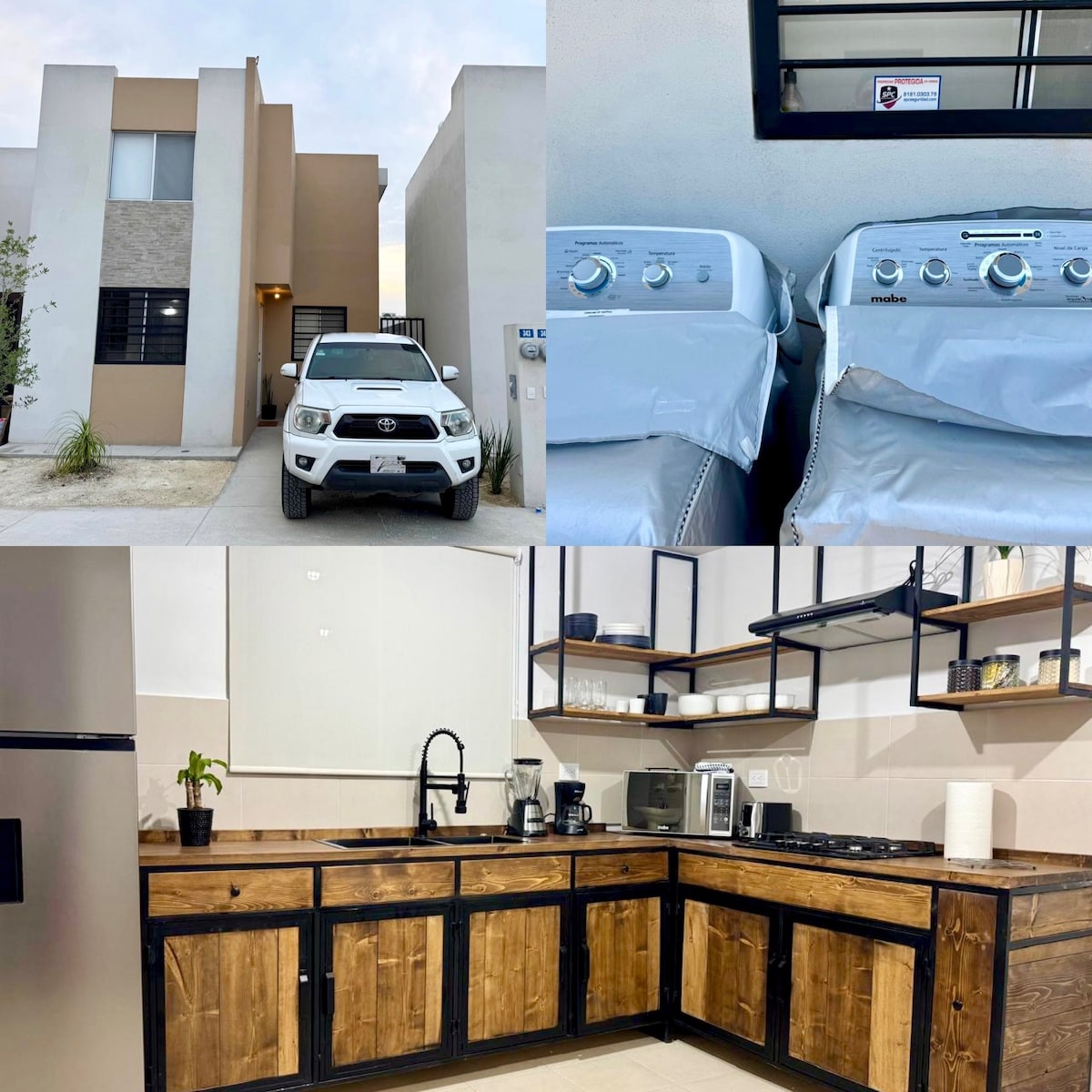"¡Bienvenidos a nuestra encantadora casa cerca de la playa! Nuestra propiedad se encuentra en un vecindario seguro y familiar. Con tres acogedoras habitaciones, un baño y medio, sala de estar con pantalla, comedor y cocina, wifi, area de trabajo, climas tipo mini split, recamara principal con pantalla y acceso al balcon, area de estacionamiento para dos coches, amplio patio, cuarto de lavado, agua caliente, camaras de seguridad en exterior y sistema de alarma. Vengan y disfruten en familia!".