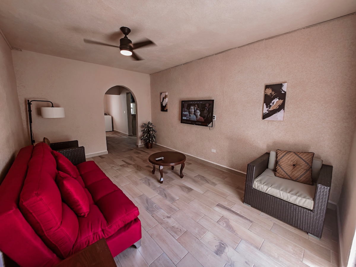 Take Welcome to our Cozy house in a gated community located just 4 minutes from the University of Montemorelos. Whether you come for work, study or vacation we have everything you need to feel like home away from home. As you arrive to the apartment you can let yourself in with your personal code. The place has 3 air conditioning units for your confort. In the living room you can enjoy a 50" smart TV with free Netflix as well as high speed internet. The patio has a BBQ grill, table and chairs