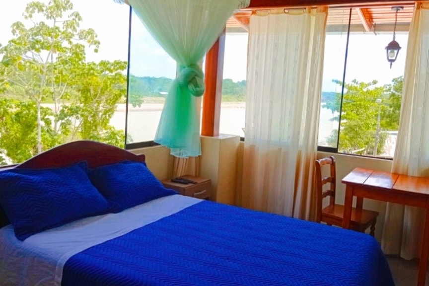 Contamos con Habitación Matrimonial, Triples bien amoblada, con una vista increíble al Río Tambopata frente a la selva, también tenemos Restaurante bar, Vive una buena experiencia increíble en tu viaje a Puerto Maldonado. Estamos a solo 1,4 km de la Plaza de armas y cerca a todo, los esperamos Zona segura, muy tranquila y silenciosa.