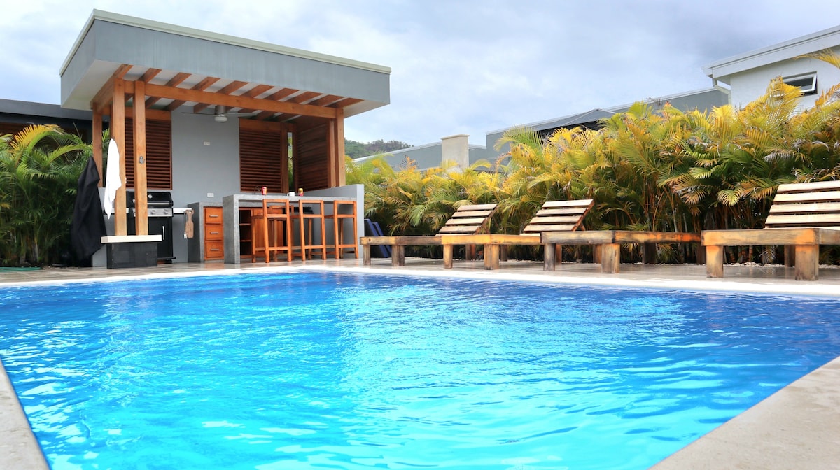 Relax in this upscale private villa with your own pool, just a 3-minute walk to the beach—perfect for unwinding in comfort and privacy. Located on the Nicoya Peninsula in the Blue Zone at Tambor beach in a gated community with security 24/7 with a beautiful 9 hole golf course. Bright open concept with 3 beds & 2.5 baths. Charcoal BBQ. In the community: Grocery store, restaurant, live music & a cafe. Air conditioned. 100 Mbps high speed internet. Free parking. Pet friendly.