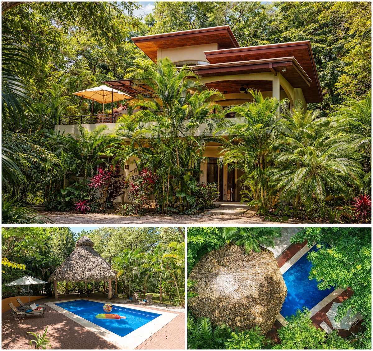 Villa el Mango is a modern luxury villa in the north of Santa Teresa beach, Costa Rica. This spectacular three-level luxury villa was completed in April 2021. It is built on a steep hill in a safe neighborhood (4x4 need we). It has a guard who lives on the property and provides extra night security. Among all the trees and plants, the villa is built on beautiful mango trees which surrounds the villa and gives it the name "Villa el Mango".