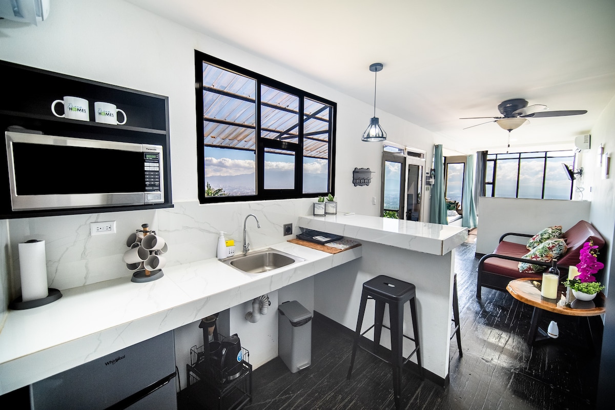 Nestled in the mountains north of the Central Valley, this private, tranquil, relaxing, and homey retreat offers a unique experience. Less than 10 minutes from downtown Heredia, you can enjoy your perfect getaway with all the conveniences of the city, in a magical setting that will leave you breathless with its dreamy views. With its spectacular vistas, you won't forget your stay in this romantic and memorable place. At Dream Homes Vacaciones, we want to give you plenty of reasons to be happy.