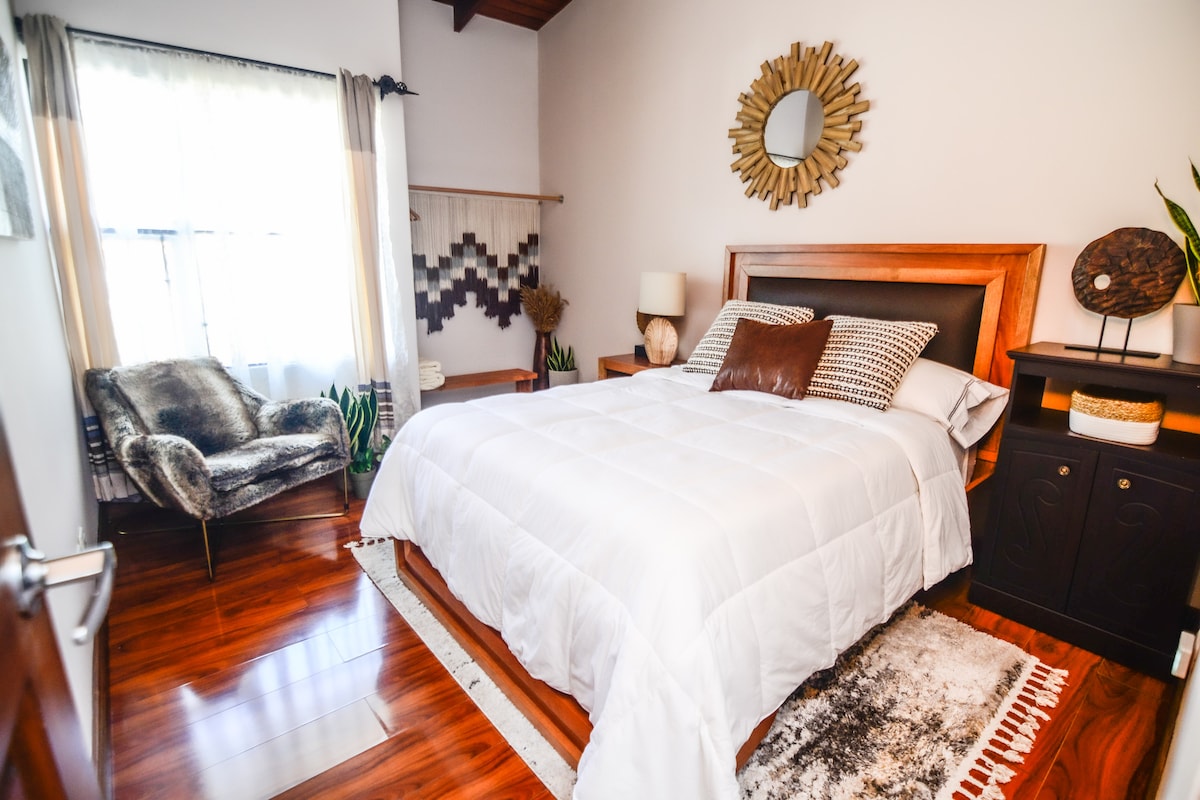 After a long flight, there's nothing better than arriving at your own private oasis just 5 minutes from the airport, where you can unwind on the spacious outdoor patio. And if you are returning home this is the perfect place to recharge and prepare yourself for a flight. Every detail in our rental was designed with the goal of creating a space that feels welcoming and inviting. From the soft linens to the private outdoor patio, I have created a space where you can enjoy the Pura Vida lifestyle.