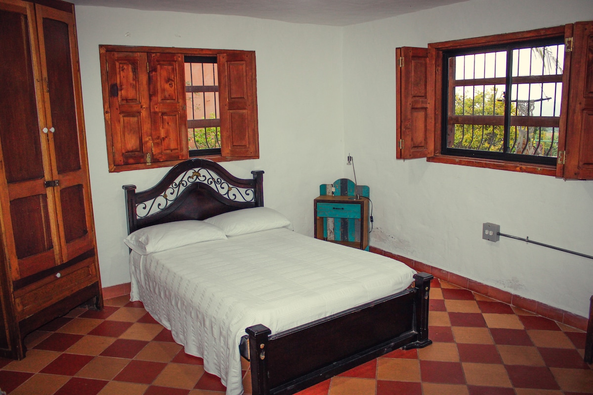 Una hermosa habitación rustica con baño privado y agua caliente, para un máximo de 4 personas, amplia, iluminada y muy ventilada, ubicada en un 1er nivel, con fácil acceso. Cuenta con 1 cama doble y 2 camas twin. DESAYUNO, ALMUERZO Y CENA INCLUIDOS