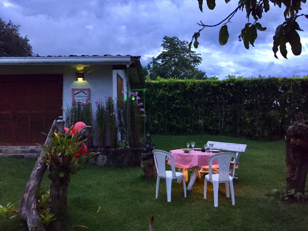 Cabaña para dos personas a 10 min en vehículo del parque principal (2.5 kms). Es un lugar tranquilo, acogedor, ideal para el descanso, donde podrá desconectarse de la ciudad, levantarse con el canto de los pájaros y disfrutar de la naturaleza. Cuenta con un espacio cómodo, cama de 1.60 mts, parqueadero gratis, cocina totalmente dotada, baño privado con agua caliente espacio para trabajo, zona de ropas con lavadora, nevera, bafle de sonido y televisor Smart con Direct TV y WIFI.