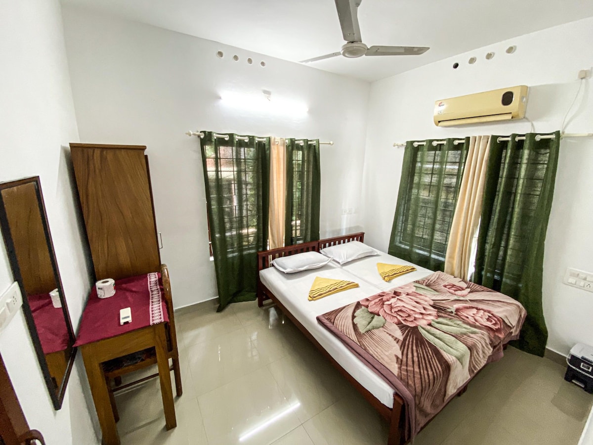 Villa Akasa is a serene 5-room homestay on Varkala’s quiet South Cliff, a short walk to a peaceful beach away from the busy North Cliff. Guests are allocated one or more of our rooms — Vayu, Amrith, Soma, Prithvi, or Jal — based on group size. Surrounded by greenery, it’s a relaxed, homely space to slow down and enjoy the coastal charm. Our warm team — with our gentle dogs Yakko and Sophie — loves welcoming guests and sharing the simple, soulful beauty of life in God’s Own Country.