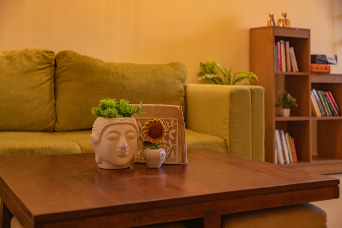 This 51 square meter furnished apartment is on the second floor. The apartment has a spacious Living room , kitchenette and an air-conditioned bedroom with attached bath and a balcony overlooking the street. The breakfast provided is home cooked and traditional Kerala cuisine. Our promise is to provide as much care, comfort and peace you would get in a star-rated hotel, with the personal and sociable touch that is synonymous with Home Stays.
