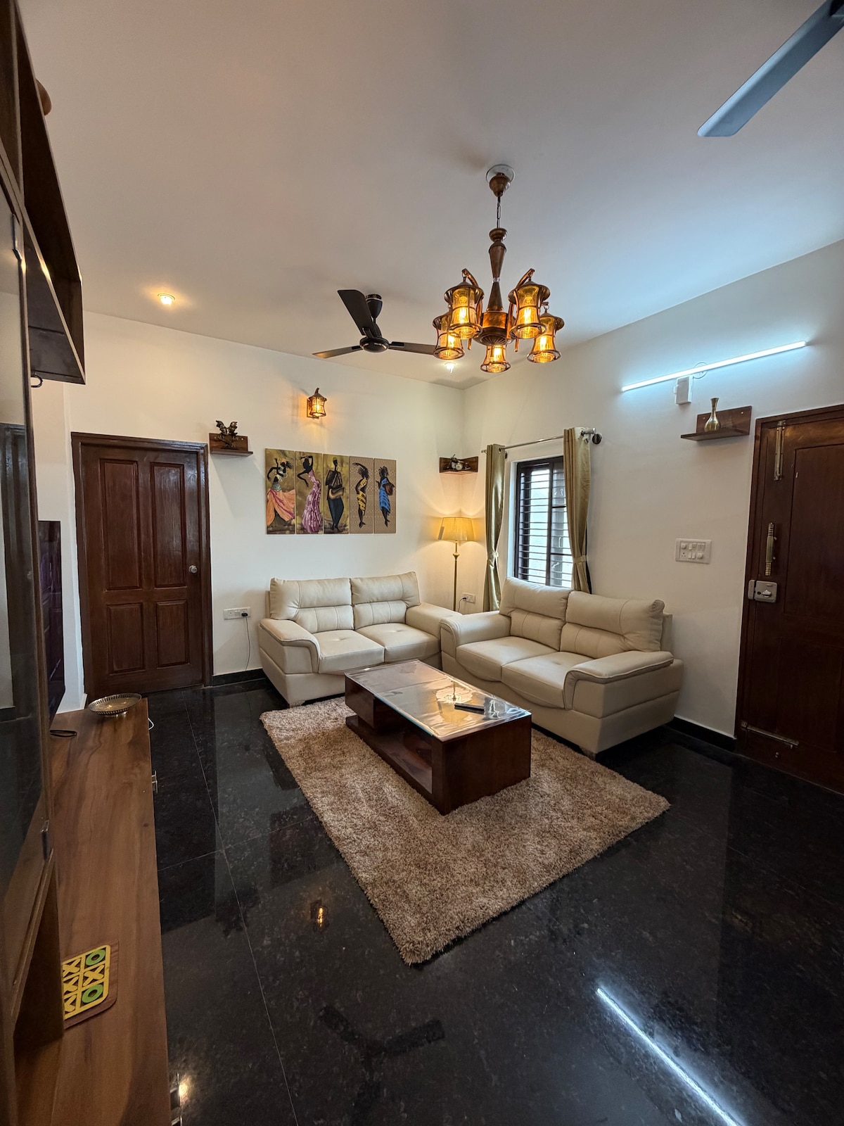 Experience refined comfort at our elegant 3BHK first-floor apartment in North Bangalore, ideally located near Manyata Tech Park, Bhartiya City, Sobha City, and major SEZs. Hebbal Ring Road is just 5–6 km away, while Kempegowda International Airport is reachable within a 30-minute drive. Enjoy a spacious layout, modern amenities, and a calm residential setting close to the city’s vibrant culture. Netflix and Amazon Prime are included for your entertainment. Ideal for families, business or leisure