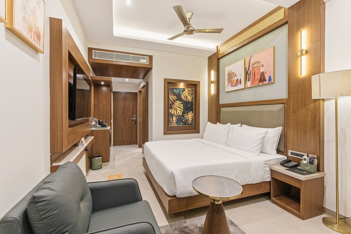 Our luxury rooms offer a sophisticated and indulgent experience. We offer spacious rooms featuring exquisite furnishing, premium bedding, quality amenities where you can rest or can work easily from the room. Don't forget that we are pet friendly. Every pet at our property is our valuable customer. (Complimentary buffet breakfast is included).