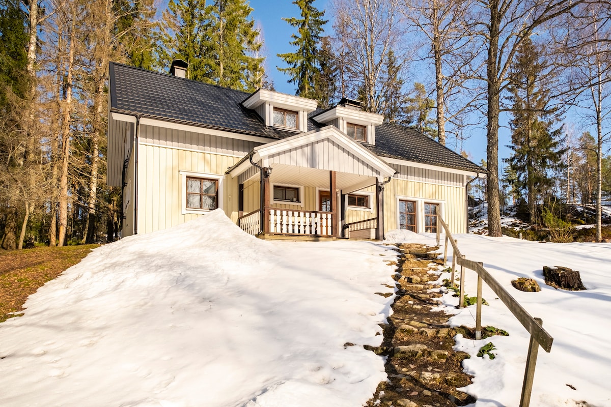 Relax in calm and stylish space with sauna, fireplace, lake and boat. Close to Helsinki (80km) Ideal place for you family vacations. Good equipped kitchen with quality finish designed dishes. Great fishing on the lake. Boat is included in rent price. Cottage has own pier (stairs down) and in 1,5 km is swimming beach. Electric cars can be charged. We use green power. Very quit place, beautiful nature, few houses in the area. Our house is last one and stand close to rocks.