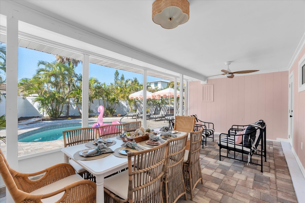 ☀️Welcome to Bayberry Beach Cottage A on Anna Maria Island! Just +/- 400 feet (2 min walk) to the beach! With a heated private pool, fenced backyard, outdoor games, & grill, it’s the perfect spot for fun-filled days and relaxing nights! 🌴This recently renovated beach cottage has 2 king bedrooms, 1.5 baths. 📍You’re just a 2-minute walk to Salt, a trendy restaurant and craft cocktail bar with live music. More local favorites and beach bars are nearby, & lively Bridge Street is only 1 mile away