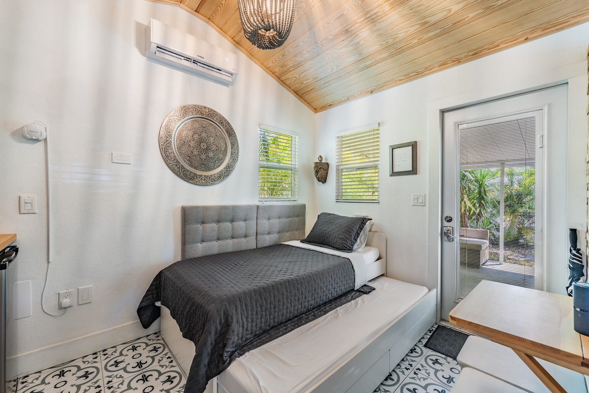 位于市中心的舒适单床私人小屋!