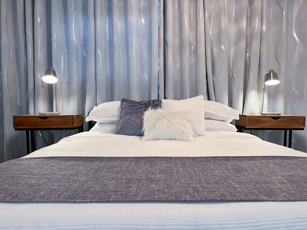 3-bedroom, 2-bathroom retreat that seamlessly blends urban convenience with cozy tranquility. Tucked in close proximity to downtown, you'll revel in the ease of accessing the city's dynamic attractions, exquisite dining, and abundant entertainment options. ✔ 3 Cozy Bedrooms ✔ Stand Alone Bathtub ✔ Hot Tub ✔ Airy Open Living Space ✔ Well-Appointed Kitchen ✔ Smart TVs in every Bedroom and the Living Room ✔ High-Speed Wi-Fi ✔ Convenient In-Unit Laundry ✔ Complimentary Parking
