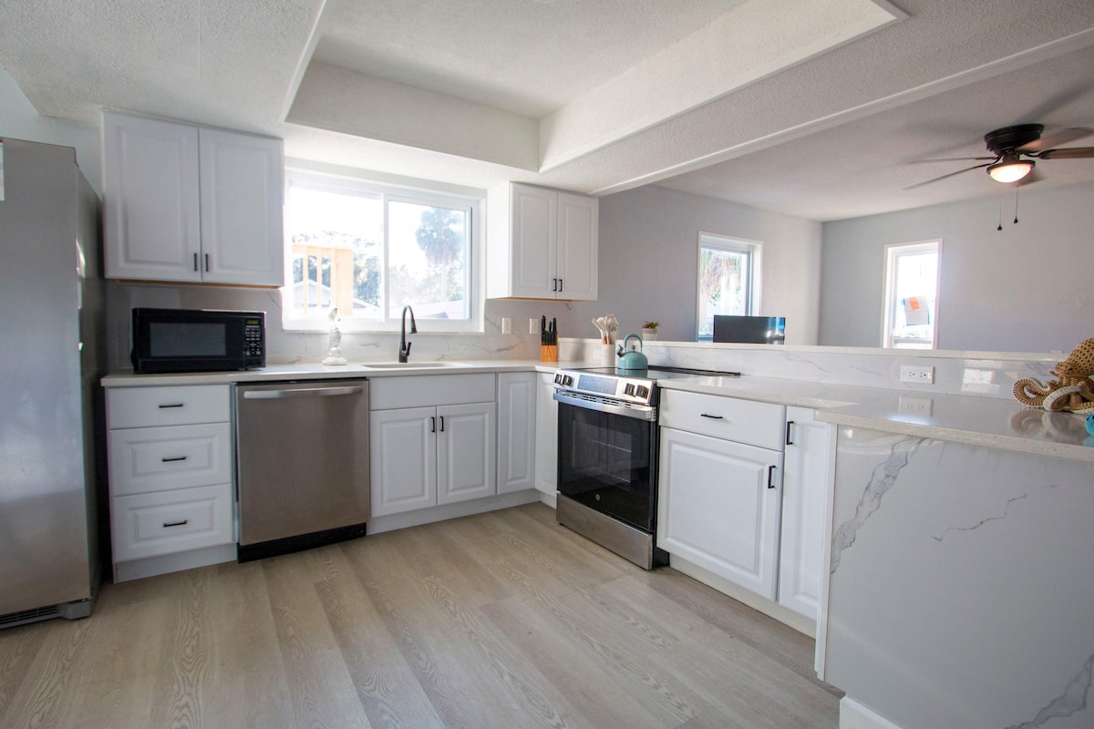 🌴 Escape slice of paradise, just minutes from the beach and surrounded by Florida’s natural beauty. This 2BR waterfront home features a private dock, a fully stocked game room, and a Florida room with sunset views and a cozy coffee bar. Relax outdoors with a fire pit, BBQ grill, and 6 lounge chairs, or launch your kayak from the backyard and paddle straight to the Gulf. Whether you’re here to unwind, explore, or entertain, this home has it all.