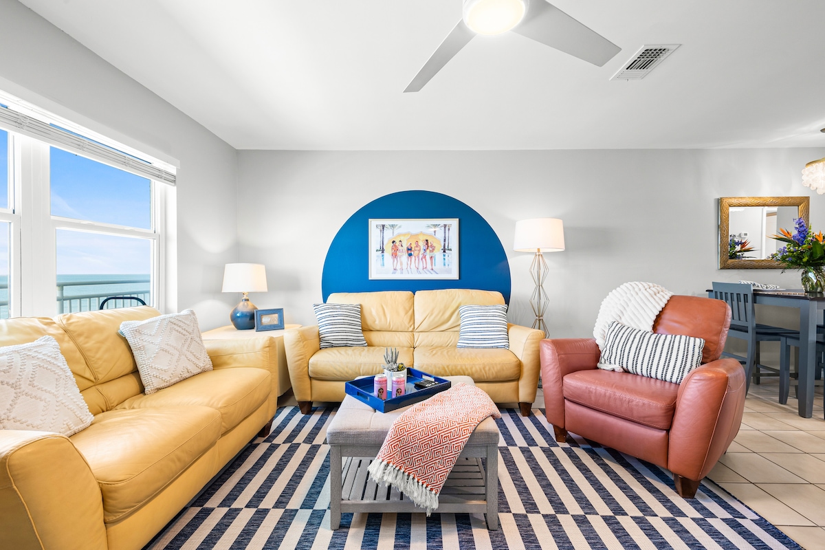 Be among the first to experience this new condo resort. 992 sq ft of beachfront luxury with full resort amenities. These upper-floor corner units have gorgeous views of the ocean, and each room has a window with beach views. With 2 bedrooms and 2 bathrooms and a pullout couch in the living room, these units can comfortably house 6 people. After arriving in your open concept living area, you will access your private balcony through retractable sliding doors that let the ocean air in.